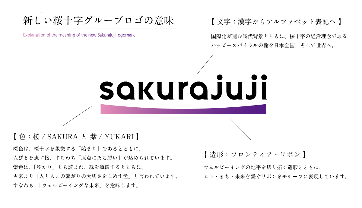 グローバルな展開と認知拡大を見据え、グループ名称の表記を、従来の日本語表記「桜十字」から、アルファベット表記の「sakurajuji」へと変更しました。
